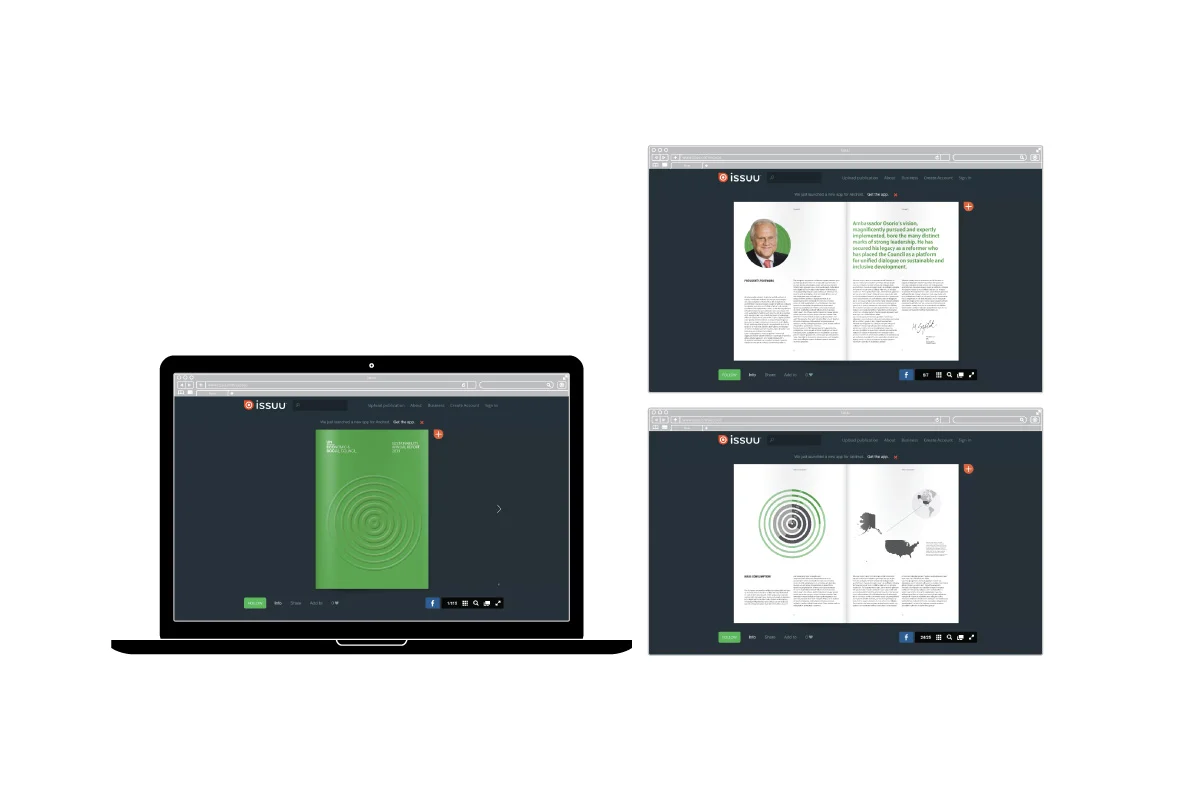 Communications materials include a website, an digital report booklet and a flag with solar powered brandmark that glows in the dark.